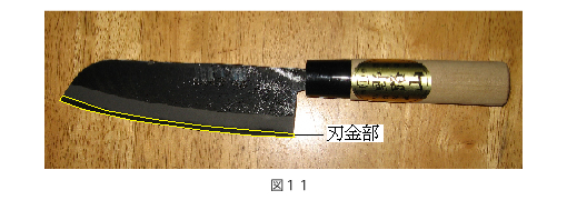 注、鋼付菜切り両刃とは、刃金を地金の真中に挟んだ状態の包丁のことを言います。