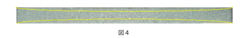 注、砥石はいつも同じ面を使って研ぐようにしましょう。表裏両方を使うと、図4.の黄色線のように砥石の表裏が凹面となります。そのため砥石が真中から割れてしまう原因となります。